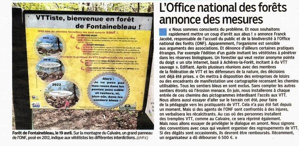 Celle-ci fut le point de départ d'une séries articles de presse remettant en cause la pratique du VTT en forêt de Fontainebleau.