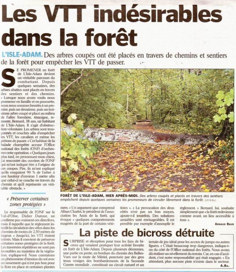04/10/2010 - VTT indésirables ? Article du Parisien.