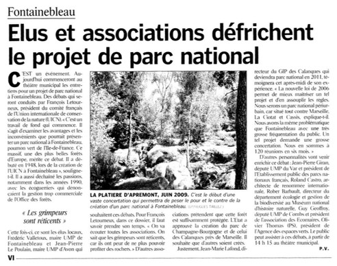 - Le GIP de Fontainebleau verra peut être le jour dans peu de temps. Mais il visera dans un premier temps uniquement à faire de la concertation. L'élaboration d'une Charte, comme cela peut être le cas dans les Calanques, interviendra au terme d'un processus de concertation qui peut être très long (10 ans à Marseille...)