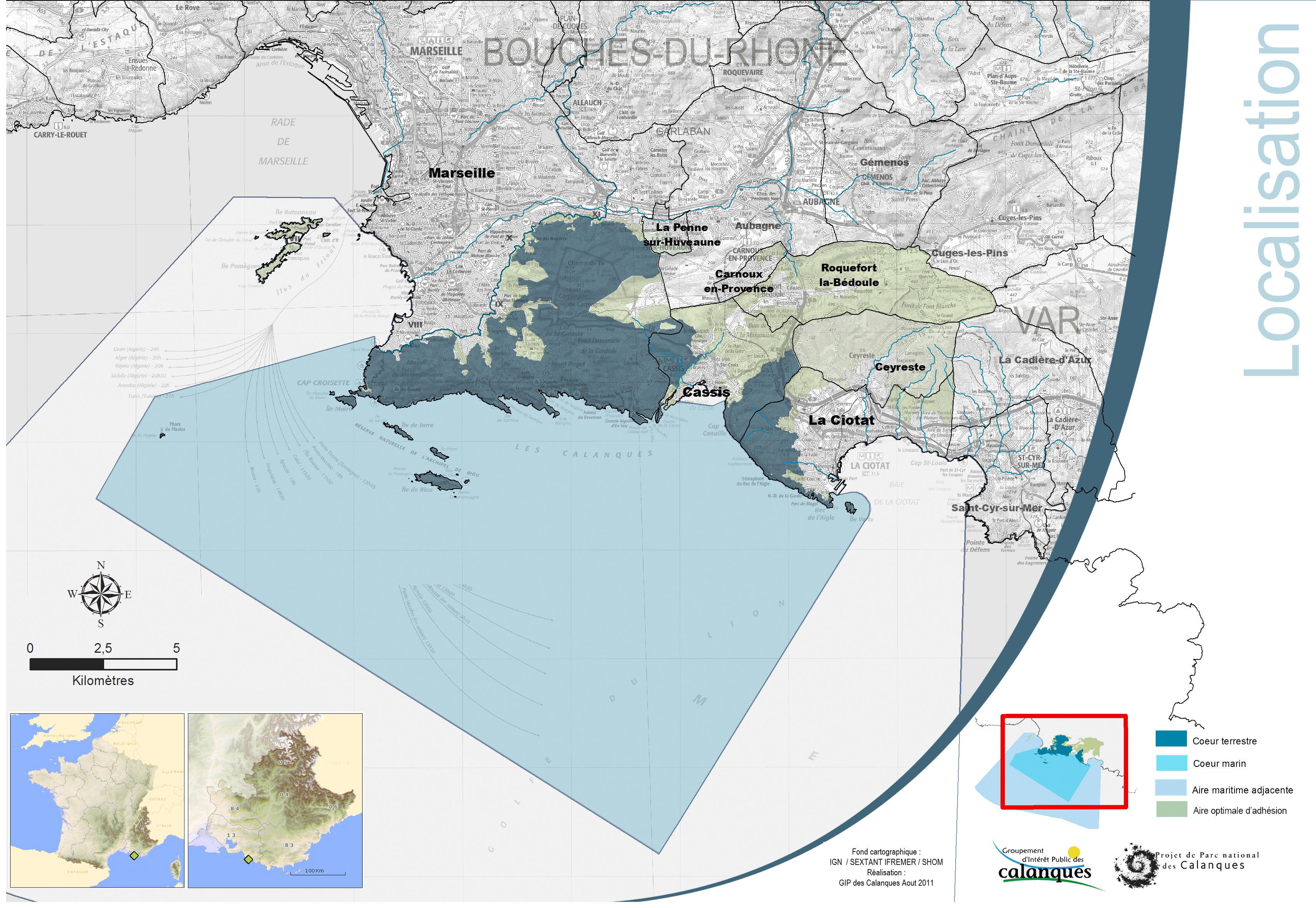 Le périmètre part de la Madrague Montredon (et comprend même le site du Frioul) pour aller jusqu’à la ville de la Ciotat et la commune de Ceyreste.