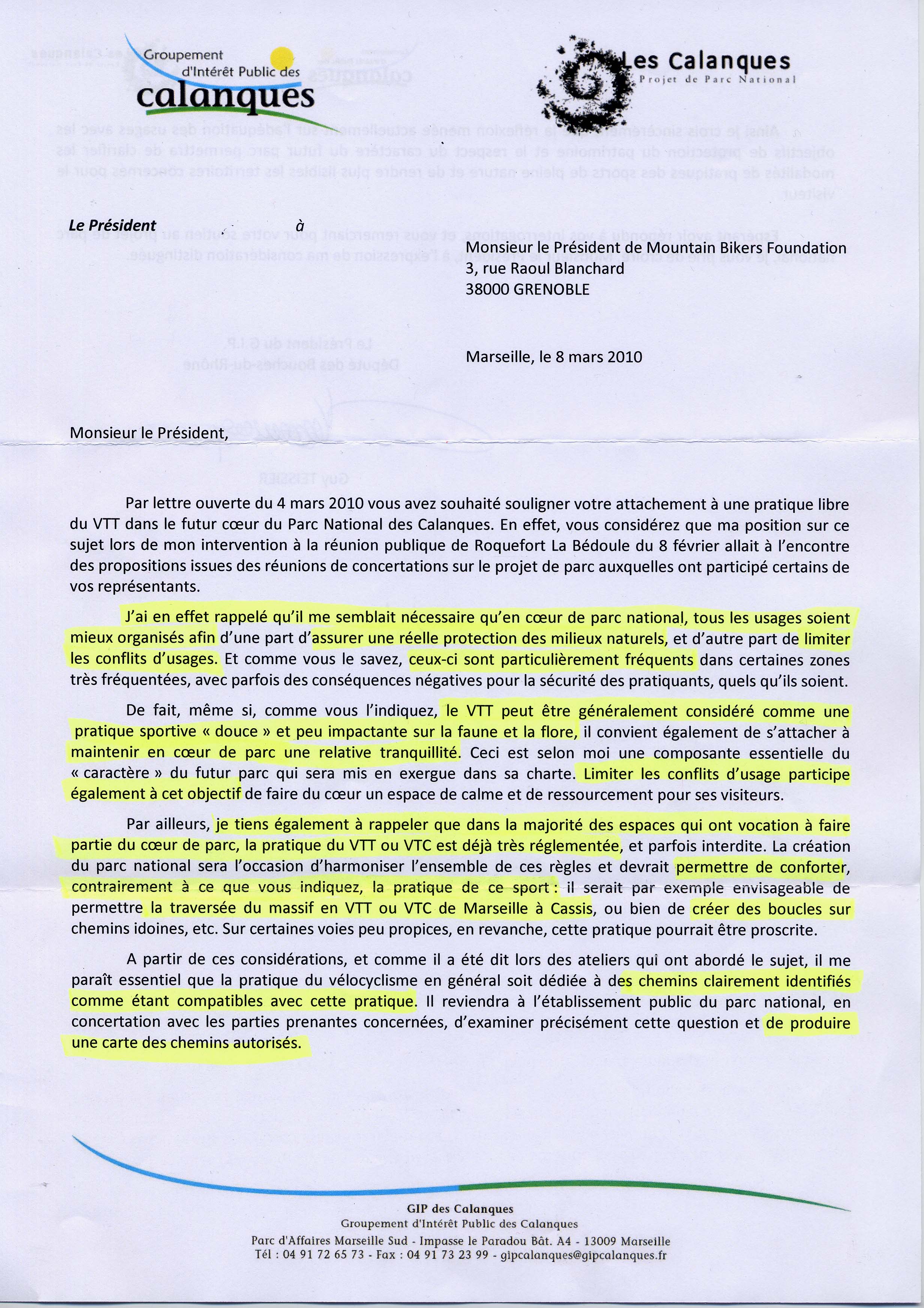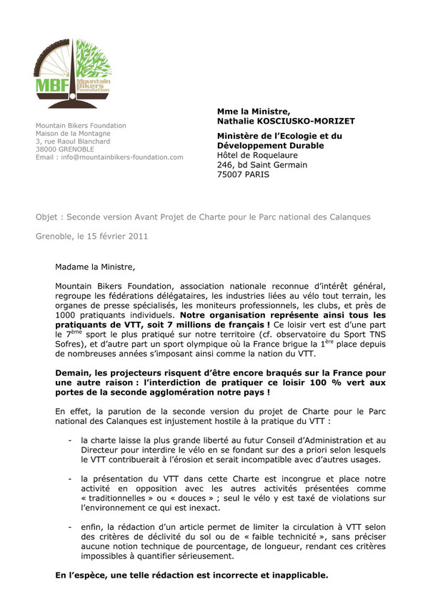 Ce 25 février, Mountain Bikers Foundation prend sa plume pour contacter le Président du GIP des Calanques.