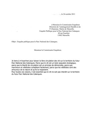 - notre message proactif pour un VTT responsable dans les Calanques (nécéssité de sensibiliser plutôt que d'interdire. Besoin des citadins de pénétrer dans la Nature pour en apprécier le calme et être sensibilisés au quotidien à la nécéssité de sa préservation, etc... )