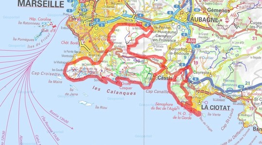 4° de manière à permettre la traversée du massif des calanques d’est en ouest