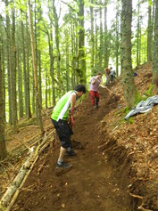 Une équipe complète de Brigades Vertes de 6 bénévoles avec deux membres du Conseil d'Administration de MBF, Guillaume LAVAUR et Thierry JALBAUD ont réalisé du super boulot avec la station du Lioran, A.S.O. et Velo Vert ! Deux chantiers de réhabilitation de sentier ont été fait sur la boucle du prologue et le final du 54 km :