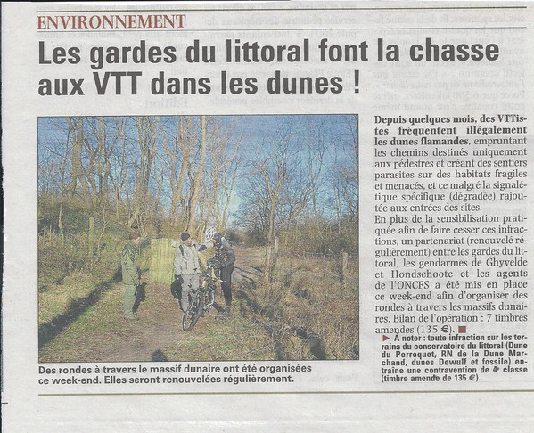 Le site du Conservatoire du Littoral des Dunes Flamandes a été le théatre d'une grosse opération Coup de Poing contre les vététistes.